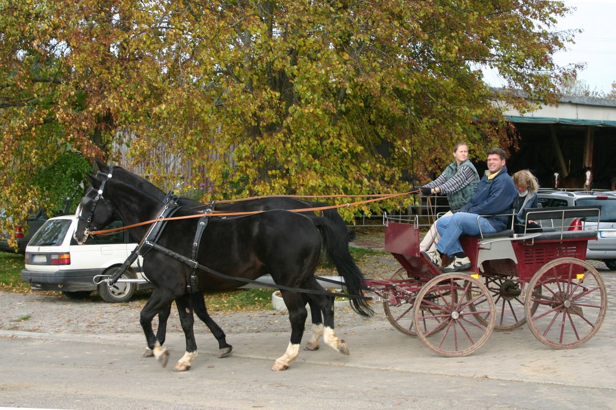 - Das praktische Fahren von einem Ein- oder Zweispänner in unterschiedlicher Umgebung (Ortschaften, Landstraßen, Wald, Feld und Flur)